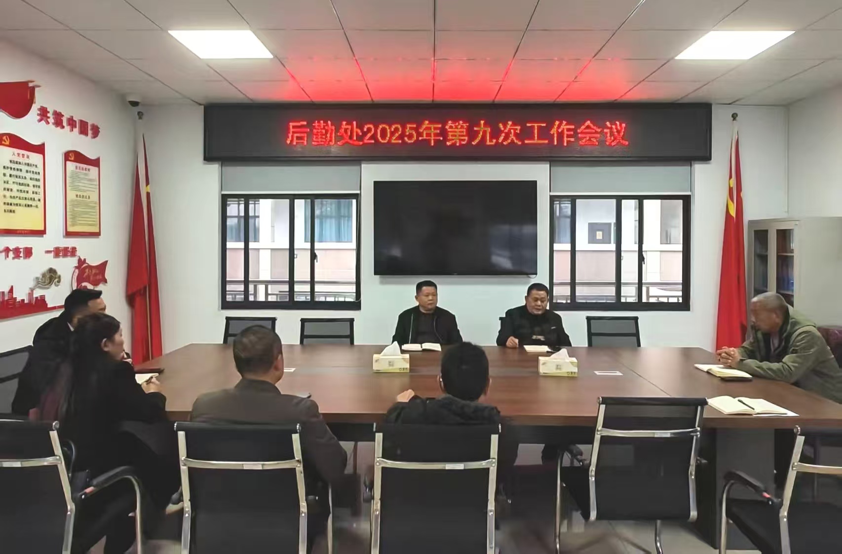 12月10日,后勤处在21D二楼会议室召开2025年第九次工作会议,会议由副校长贺修裕主持,后勤处处长潘文渊及部门相关负责同志参加会议。